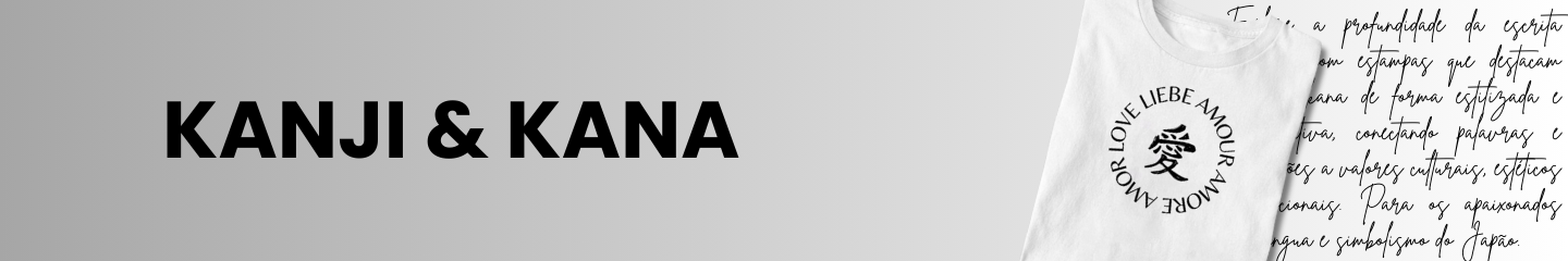 Explore a profundidade da escrita japonesa com estampas que destacam kanji e kana de forma estilizada e significativa, conectando palavras e expressões a valores culturais, estéticos e emocionais. Para os apaixonados pela língua e simbolismo do Japão.